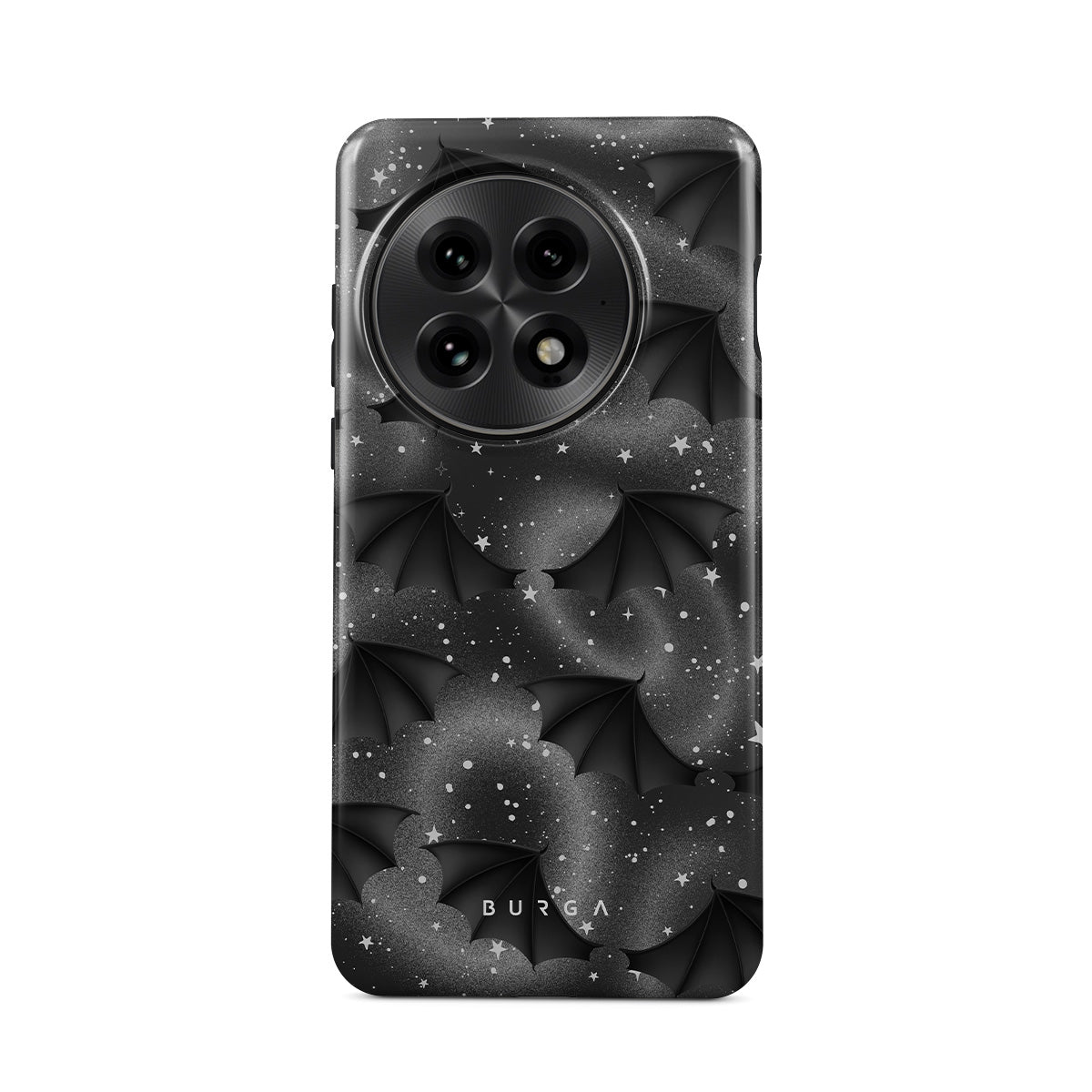 Questo design include: ali di pipistrello, stelle, spirali misteriose, cielo nero