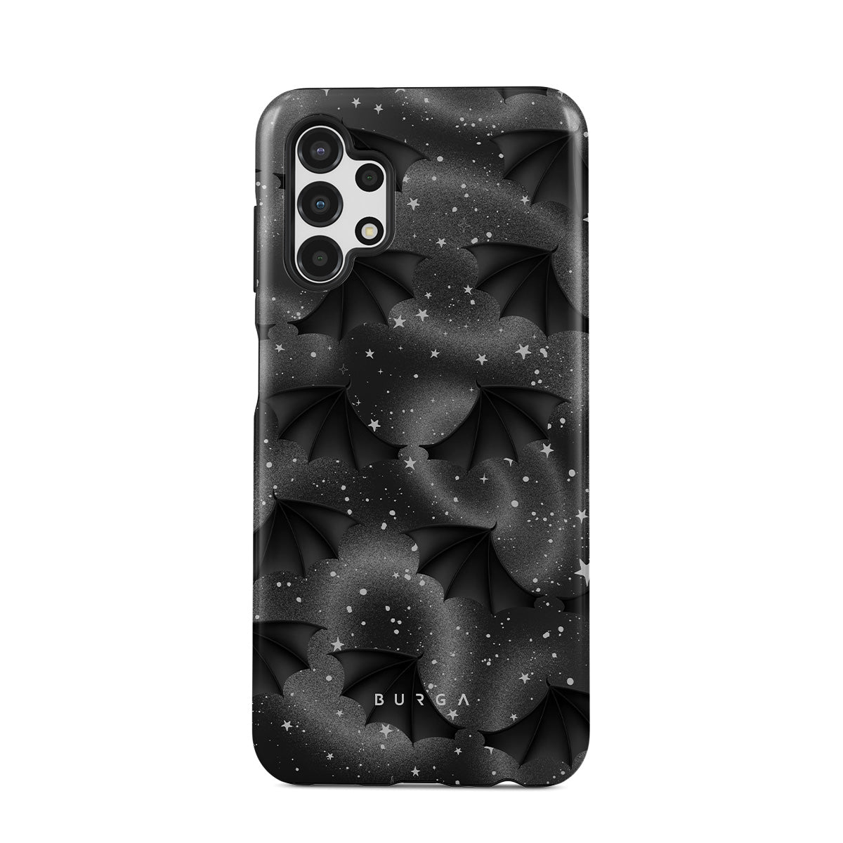 Questo design include: ali di pipistrello, stelle, spirali misteriose, cielo nero