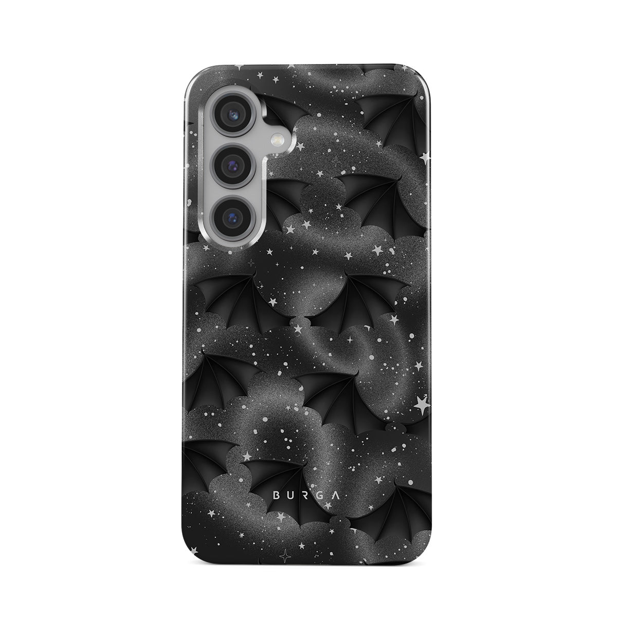 Questo design include: ali di pipistrello, stelle, spirali misteriose, cielo nero