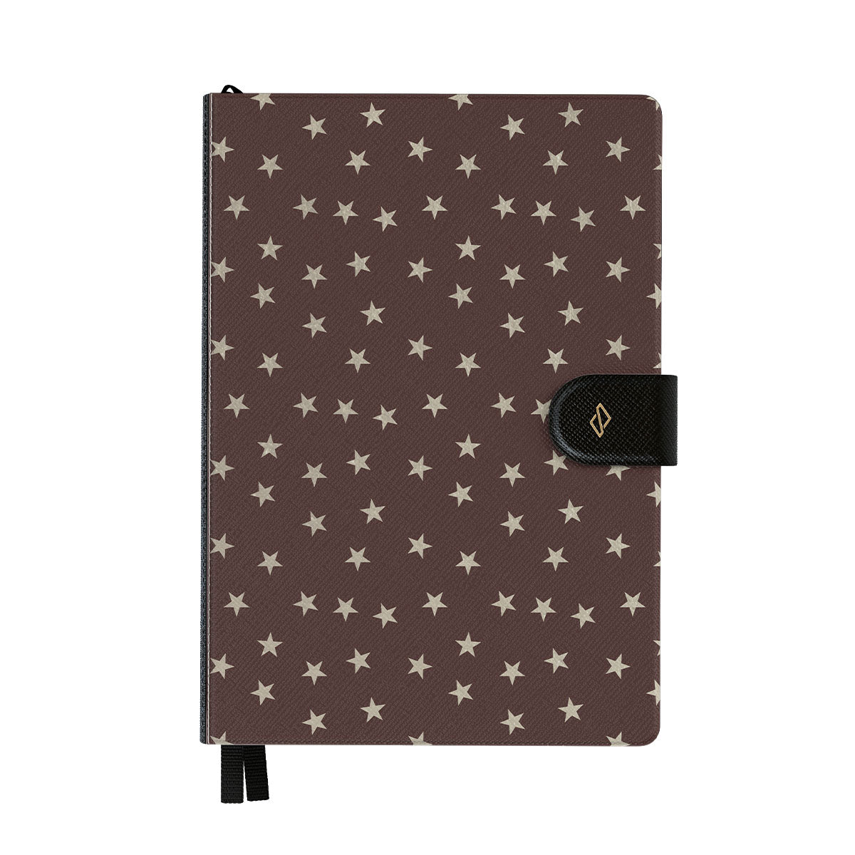 La sua elegante copertina in pelle saffiano vegan, abbinata alla chiusura magnetica, protegge le pagine da eventuali schizzi di caffè e dai piccoli inconvenienti della vita quotidiana.
