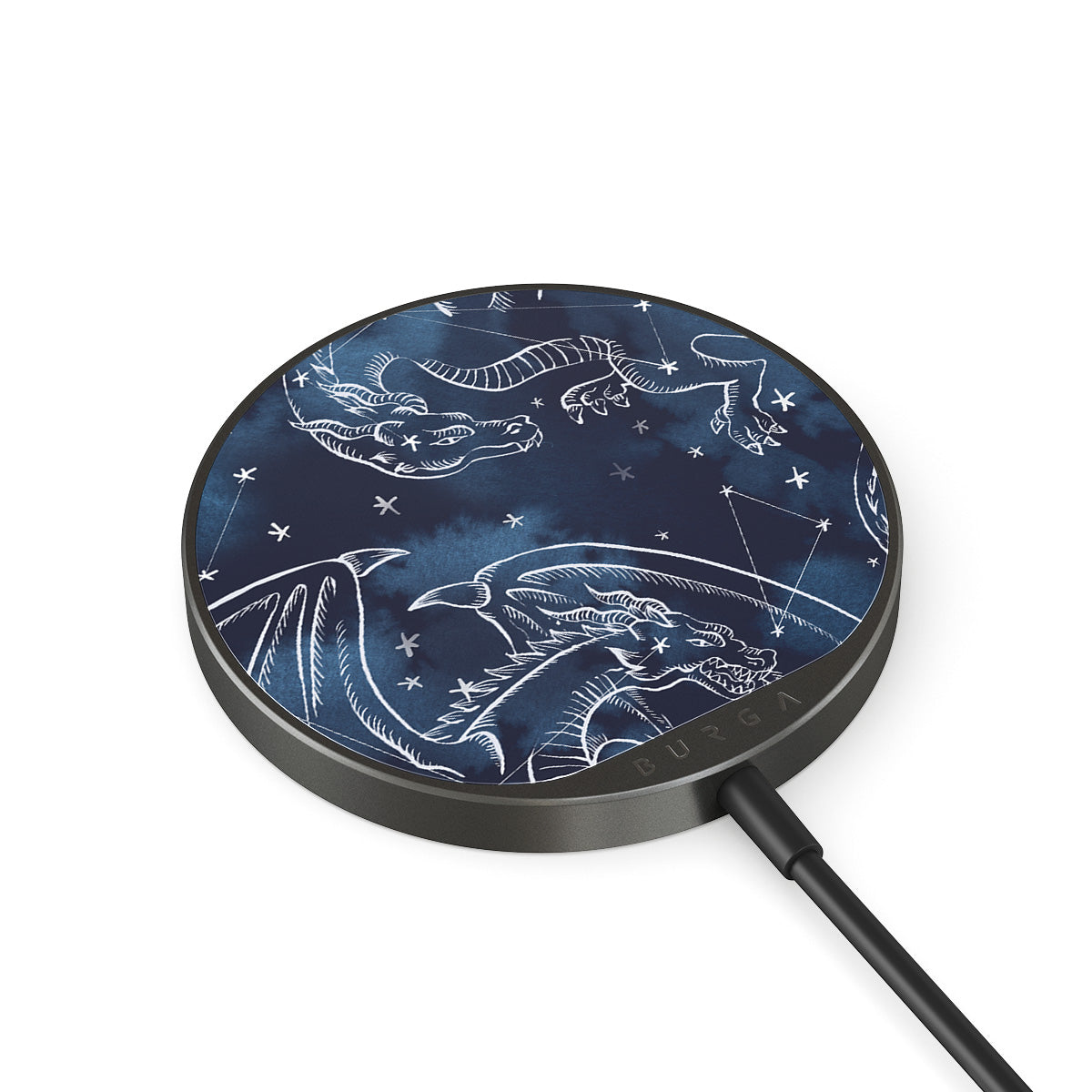 Questo design include: draghi, stelle, costellazioni, cielo blu scuro