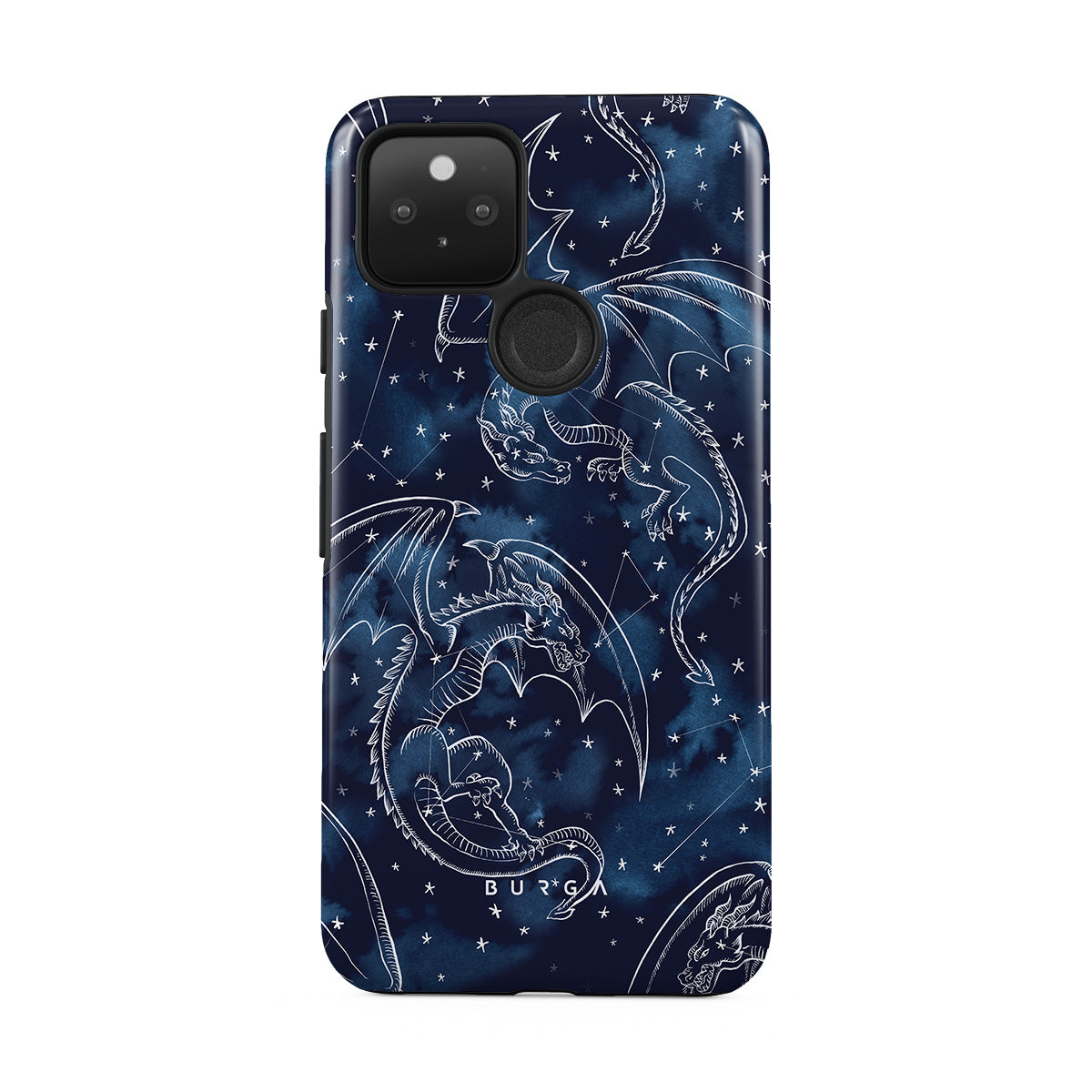 Questo design include: draghi, stelle, costellazioni, cielo blu scuro