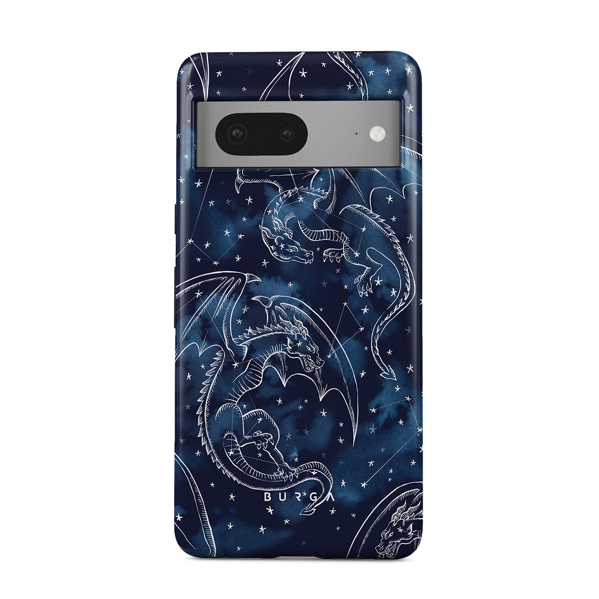 Questo design include: draghi, stelle, costellazioni, cielo blu scuro