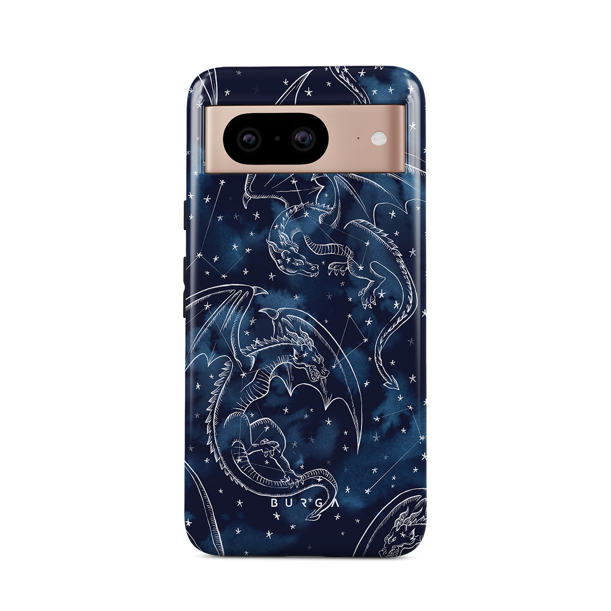 Questo design include: draghi, stelle, costellazioni, cielo blu scuro