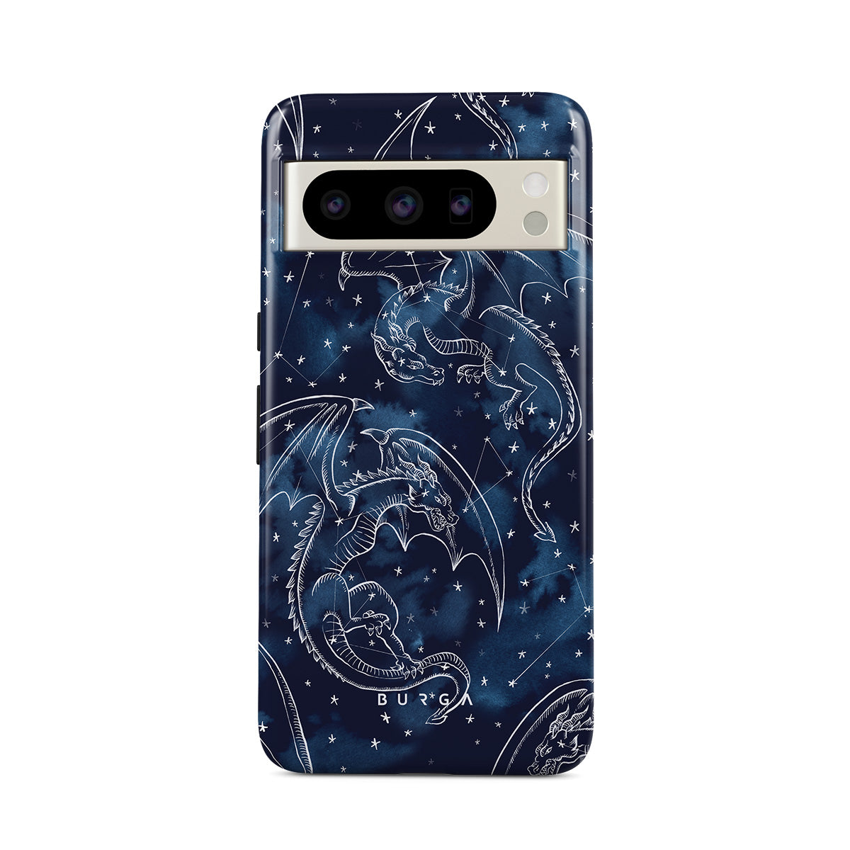 Questo design include: draghi, stelle, costellazioni, cielo blu scuro