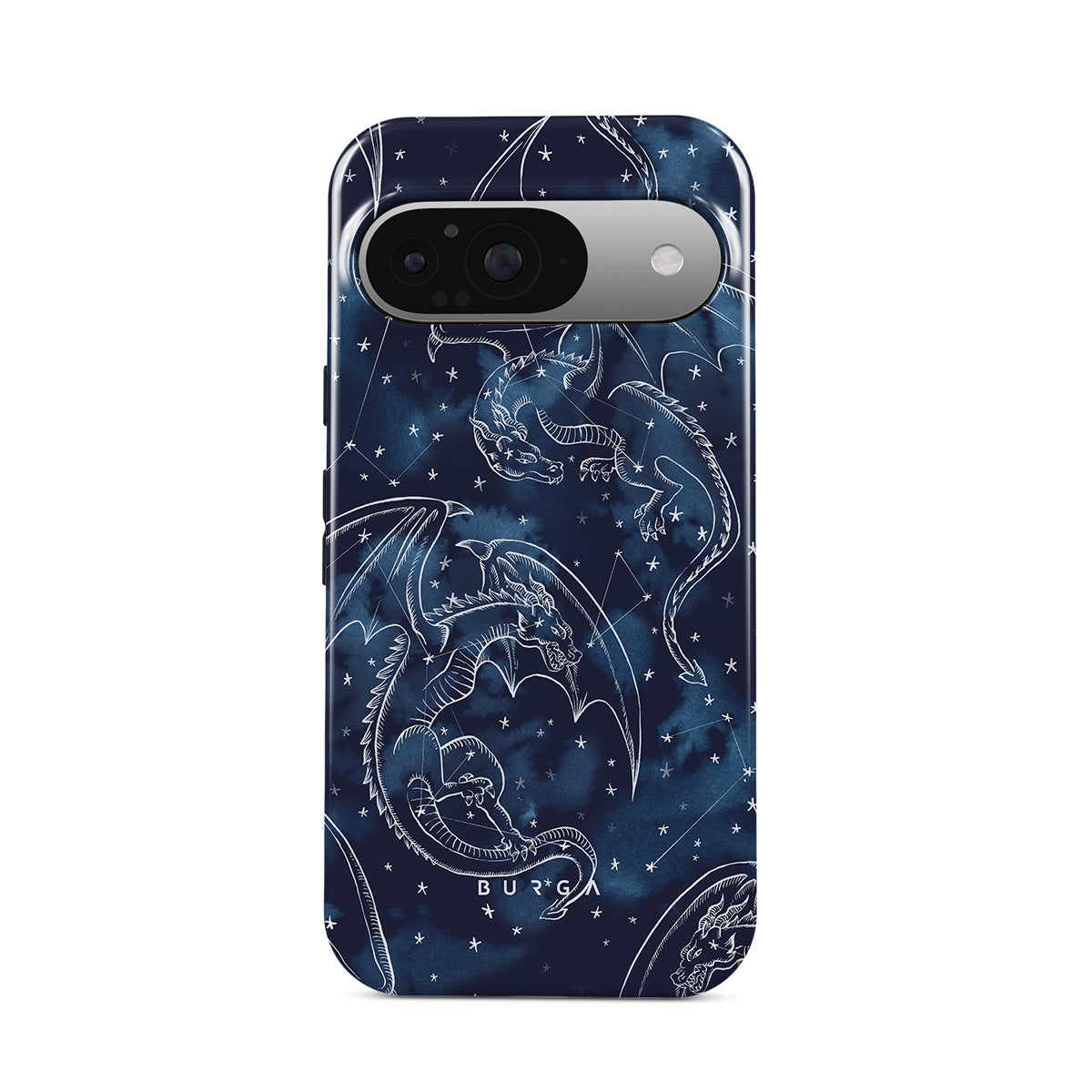 Questo design include: draghi, stelle, costellazioni, cielo blu scuro