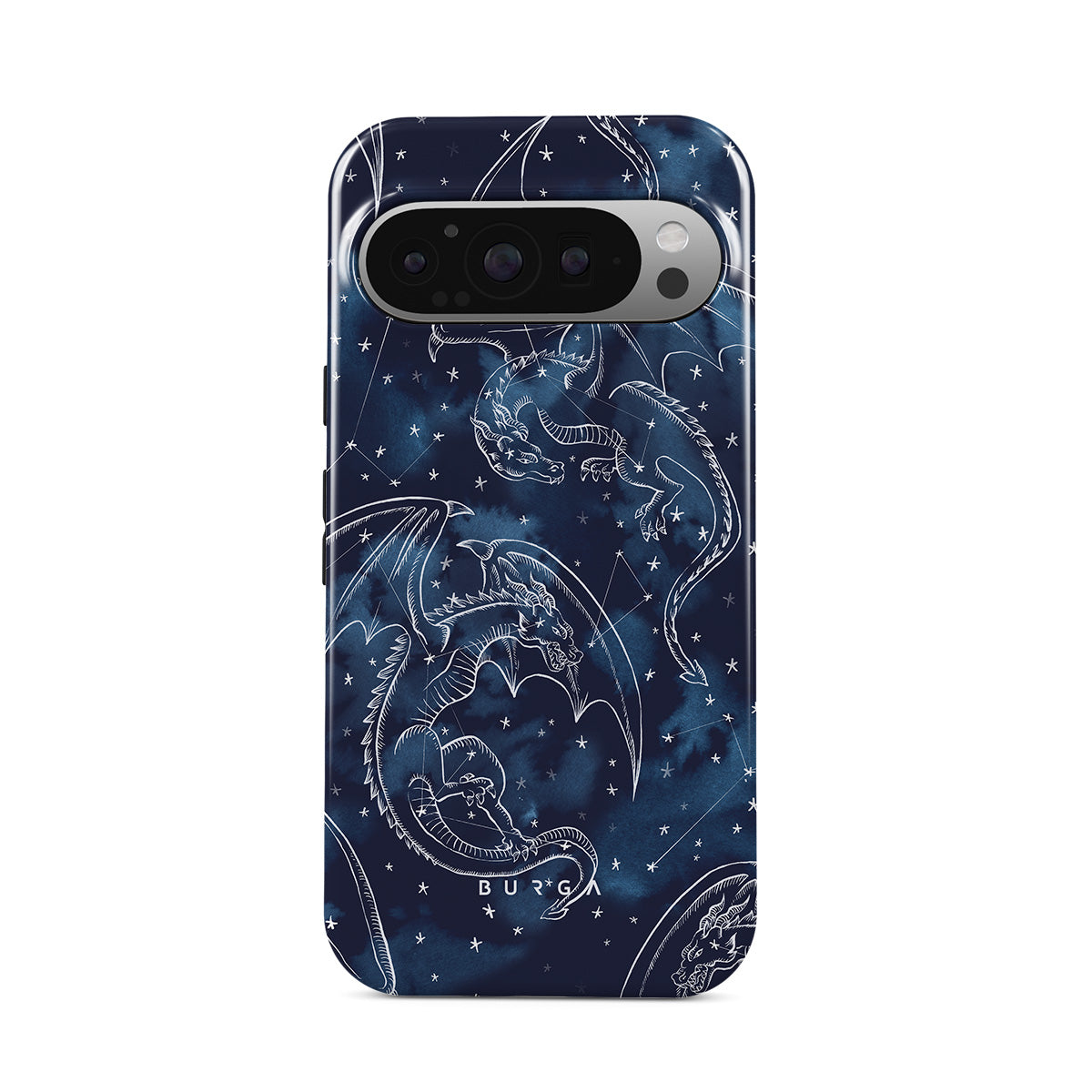 Questo design include: draghi, stelle, costellazioni, cielo blu scuro