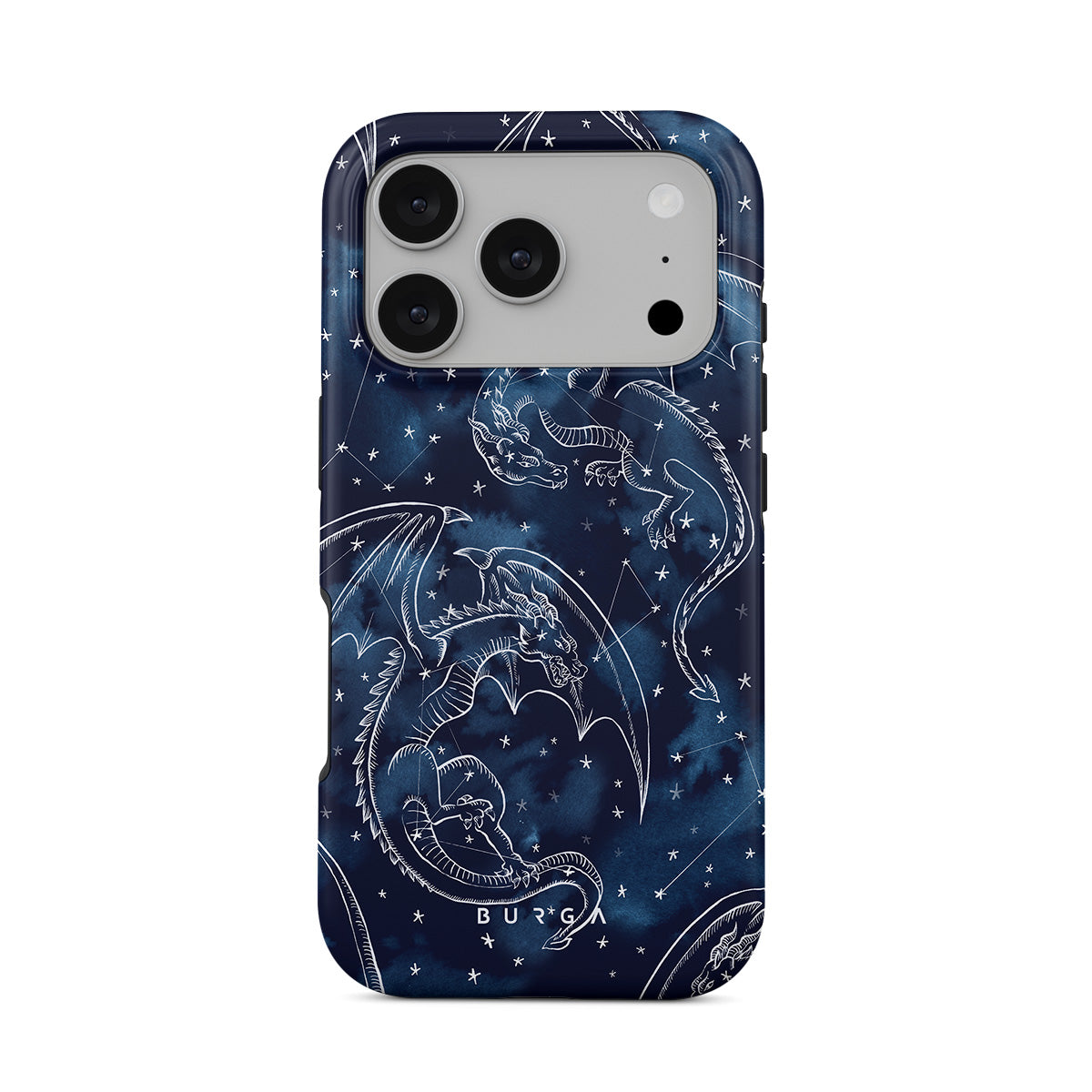 Questo design include: draghi, stelle, costellazioni, cielo blu scuro