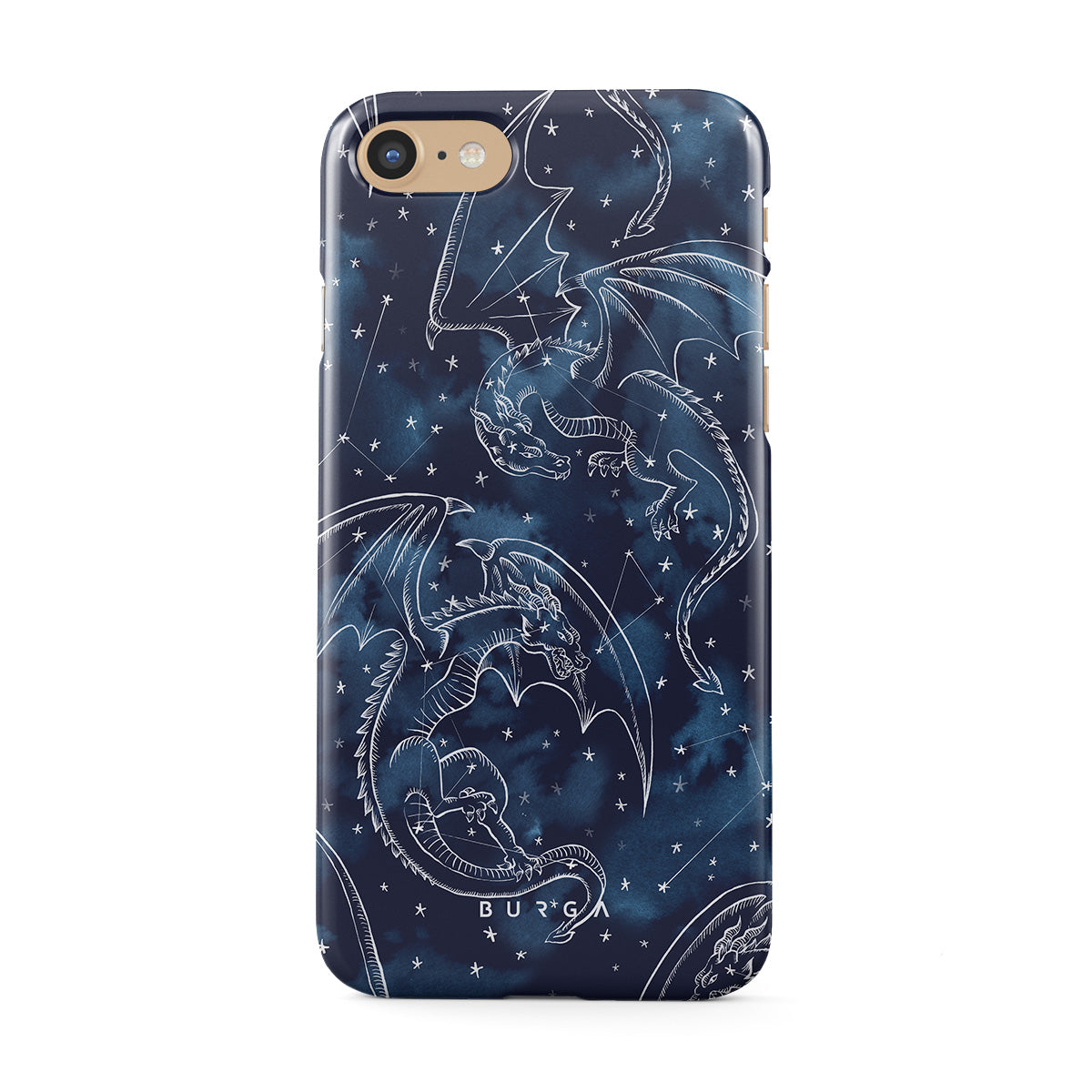 Questo design include: draghi, stelle, costellazioni, cielo blu scuro
