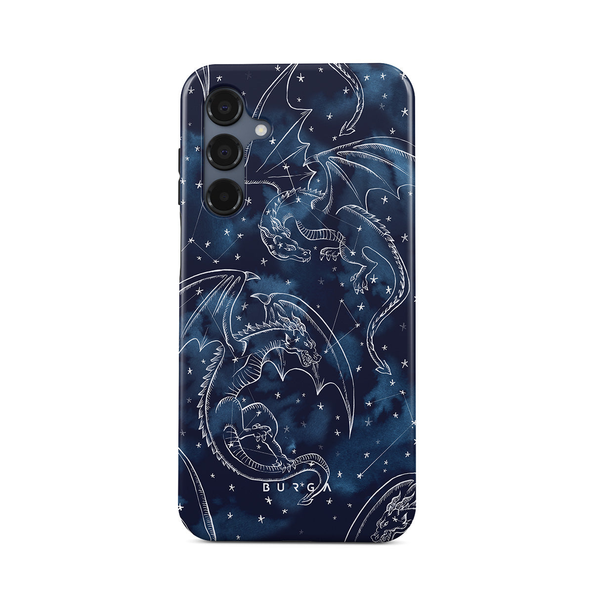 Questo design include: draghi, stelle, costellazioni, cielo blu scuro