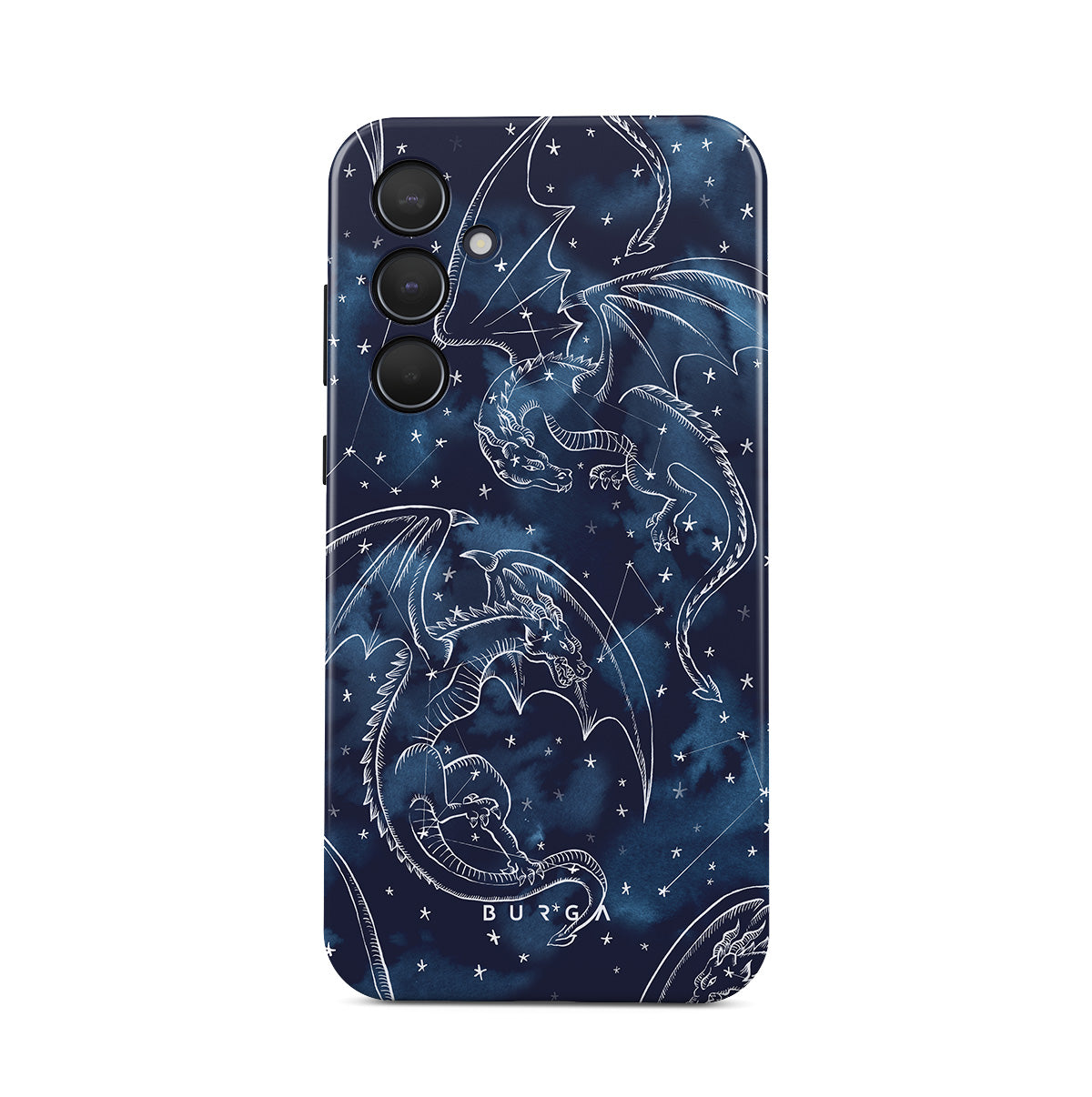 Questo design include: draghi, stelle, costellazioni, cielo blu scuro