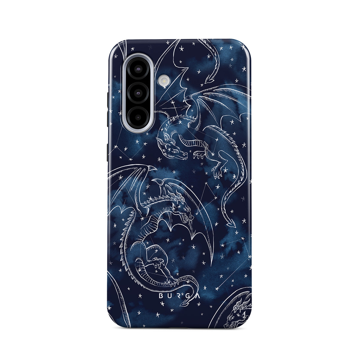 Questo design include: draghi, stelle, costellazioni, cielo blu scuro