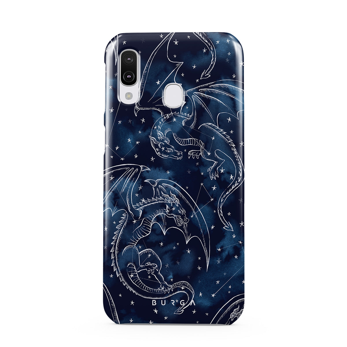 Questo design include: draghi, stelle, costellazioni, cielo blu scuro