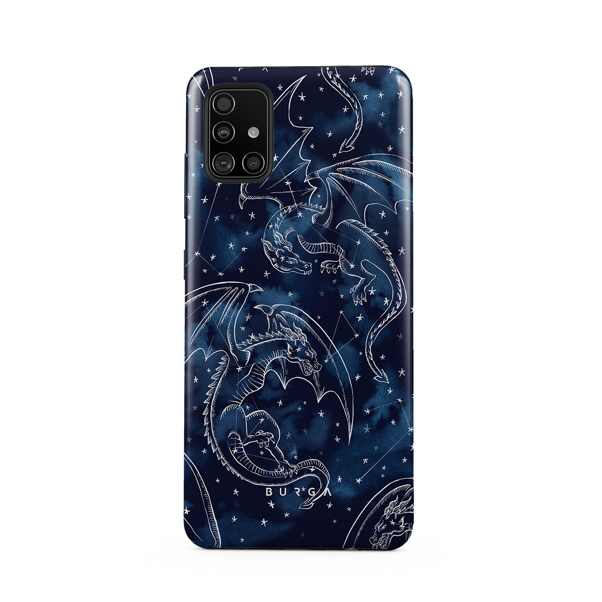 Questo design include: draghi, stelle, costellazioni, cielo blu scuro