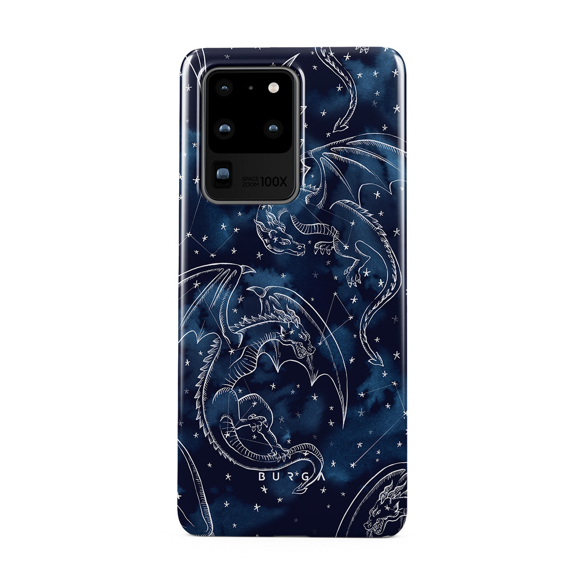 Questo design include: draghi, stelle, costellazioni, cielo blu scuro