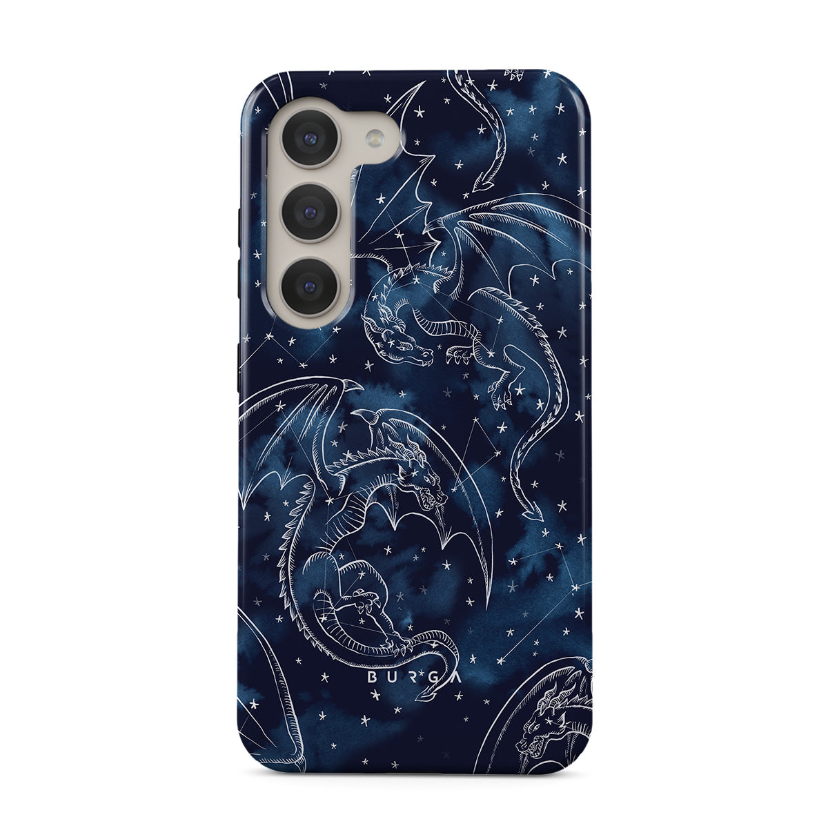 Questo design include: draghi, stelle, costellazioni, cielo blu scuro