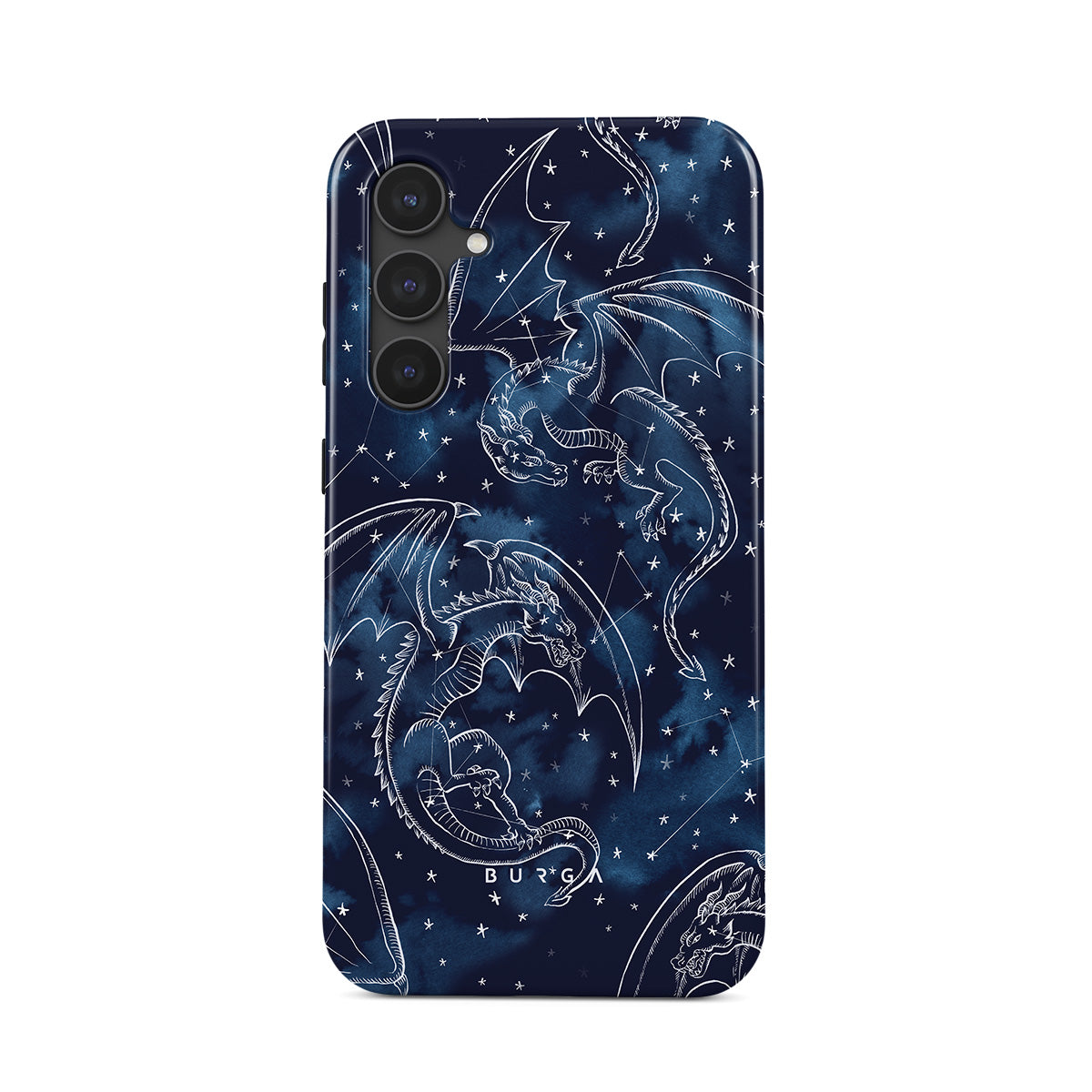 Questo design include: draghi, stelle, costellazioni, cielo blu scuro