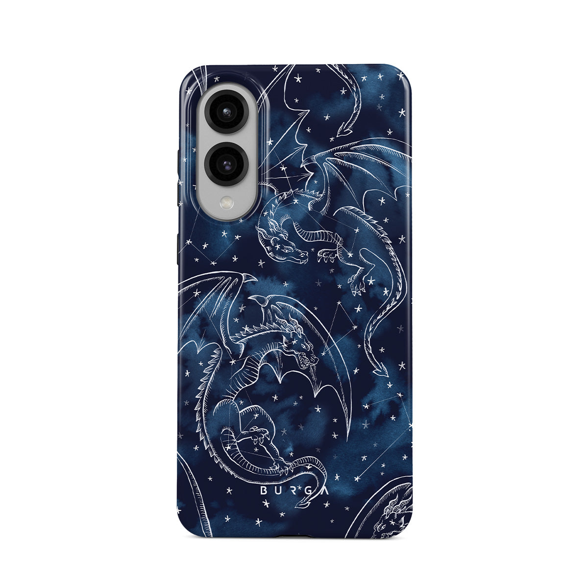 Questo design include: draghi, stelle, costellazioni, cielo blu scuro