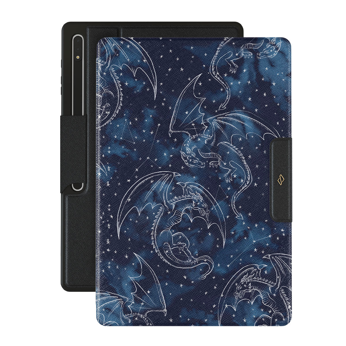 Questo design include: draghi, stelle, costellazioni, cielo blu scuro