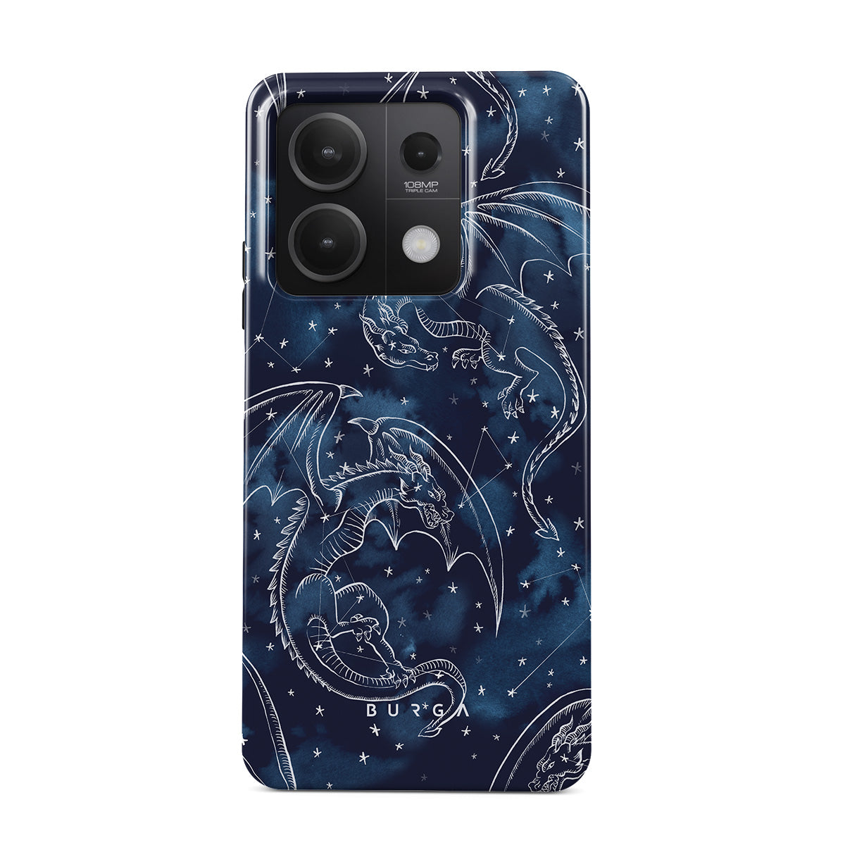 Questo design include: draghi, stelle, costellazioni, cielo blu scuro