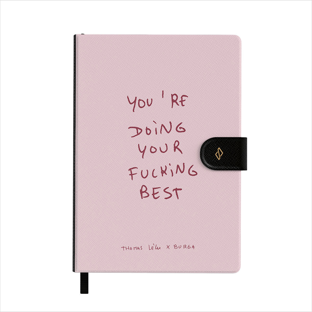 La copertina frontale in ecopelle vegan ha tutte le caratteristiche delle fantasie BURGA: piene di dettagli e di alta qualità. L’elegante segnapagina nero a nastro ti sarà utile per non perdere mai il segno.